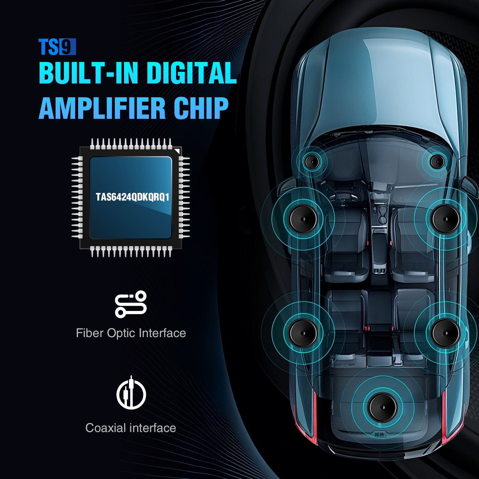sound quality with ultra-low power consumption, producing 10 times less heat than analog chips. It supports powerful output up to 4×75W, bringing an impressive audio experience.