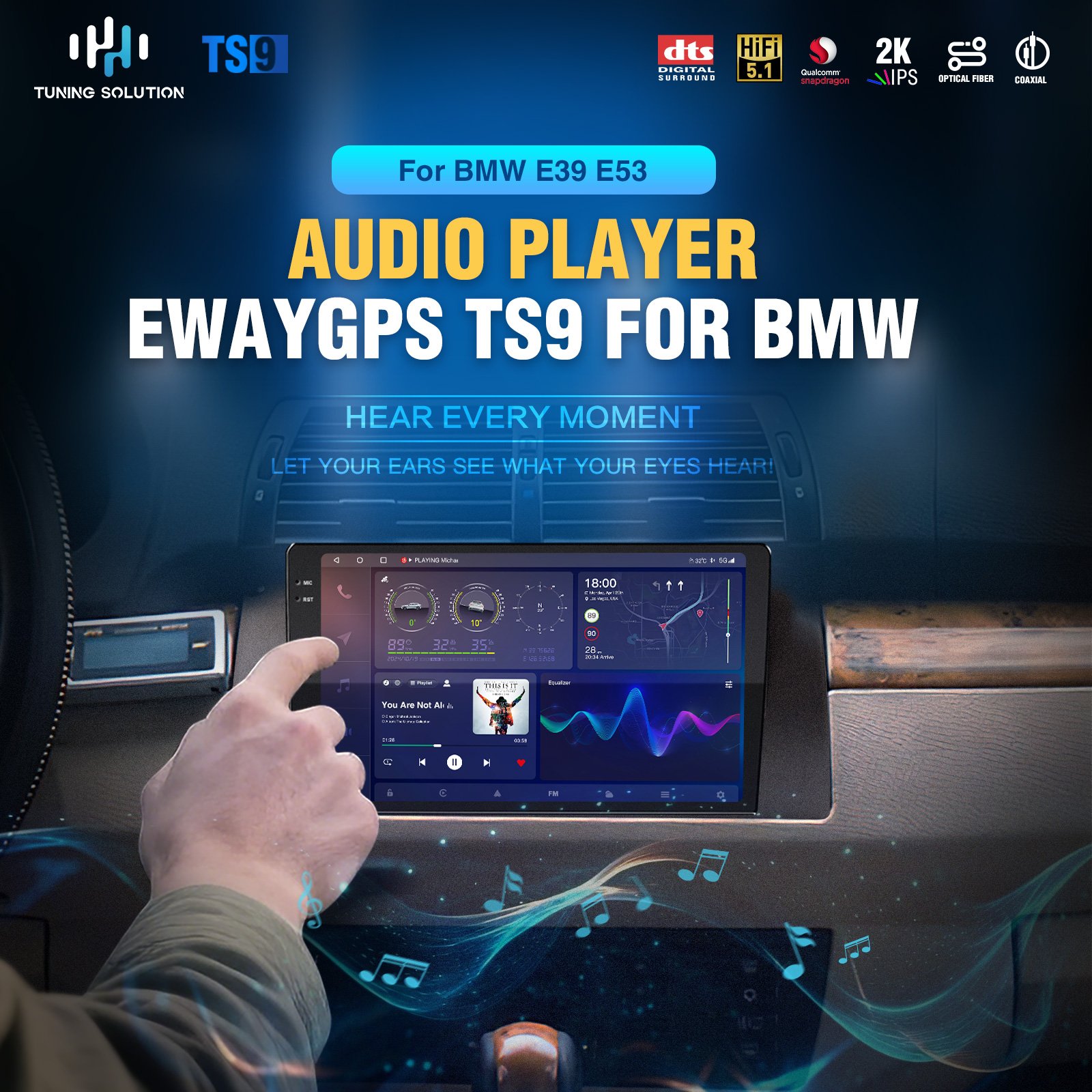 This unit features a premium-grade audio chip with DTS tuning, offering rich surround sound, deep bass, and crystal-clear detail—bringing a truly cinematic listening experience to your car.
