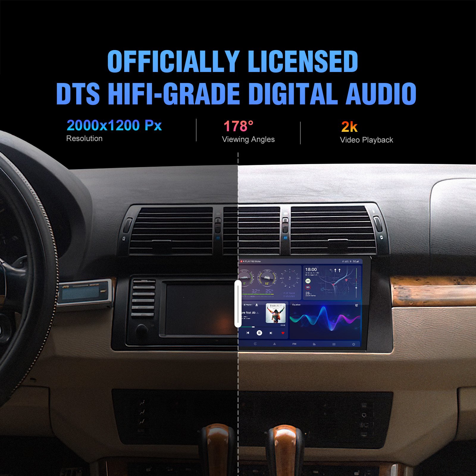 This unit features a premium-grade audio chip with DTS tuning, offering rich surround sound, deep bass, and crystal-clear detail—bringing a truly cinematic listening experience to your car.