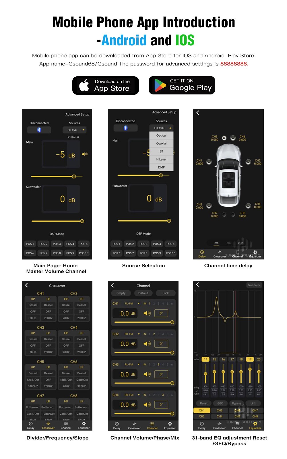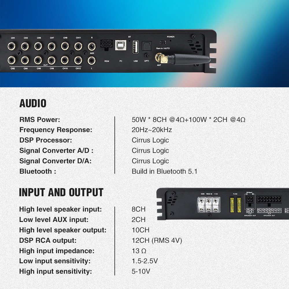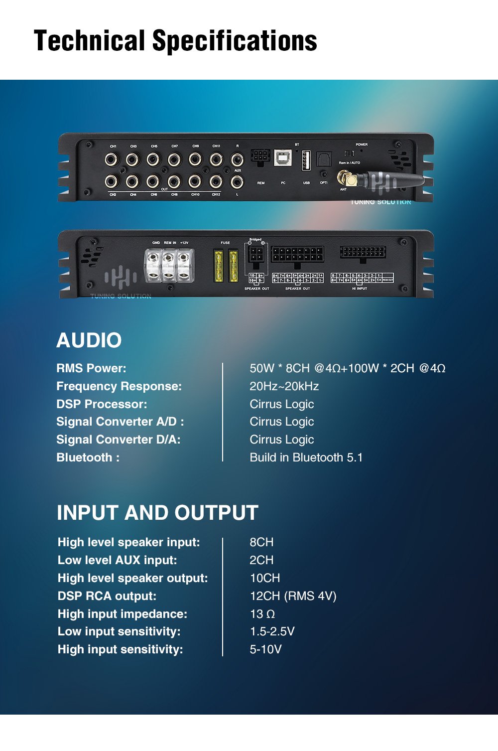 Tuning solution 10CH Dsp Car Audio Processor HiFi DSP Amplifier Fully Bridgeable Compatible With Optical Fiber Coaxial Output Ethernet Audio Box And Android Screen