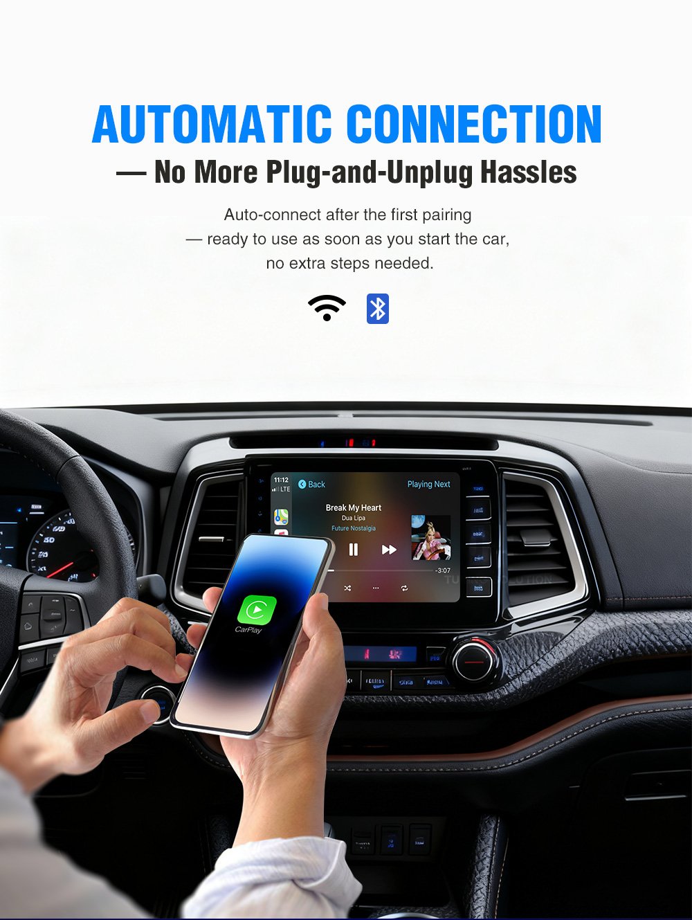 Auto-connect after the first pairing — ready to use as soon as you start the car, no extra steps needed.